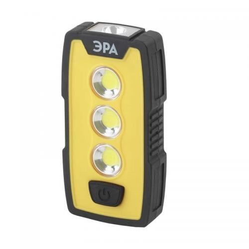 RB-802 Фонарь ЭРА рабочий серия «Практик» [6Вт COB + 1Вт LED, пласт., 3xAAA, защита IP65, крючок Рабочий фонарь серии «Практик» • 6Вт COB диод + 1Вт LED • защита IP65 (влагостойкость) • прорезиненная защита корпуса • магнит, крючок, клипсаПитание 3xAAA (в комплект не входят)