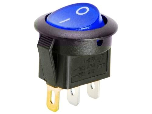 Выключатель клавишный круглый 12V 20А (3с) ON-OFF с синей подсветкой (RWB-214) специализирован для коммутации электро цепей напряжением 12В. Клавишные (Рокерные) выключатели используются в качестве девайсов изделий разного электрического оборудования (аудио-оборудовании, блоках питания, электроустановках на всевозможных производствах, автомобилях, и множества иных местах). Подобный клавишный переключатель содержит 2 положения. Принцип воздействия реализован на движении кнопки в 1 из позиций. Для
