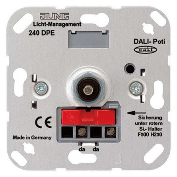 Диммер поворотный для системы DALI(потенциометр) Jung механизм - это устройство, предназначенное для регулировки яркости освещения в системе DALI. Система DALI (Digital Addressable Lighting Interface) является стандартом управления освещением, который позволяет индивидуально управлять каждым светильником в сети.Диммер поворотный оснащен потенциометром, который позволяет пользователю вручную регулировать яркость света. Это позволяет создавать различные настроения и атмосферу в помещении, а также экономить энергию, уменьшая яркость света при необходимости.