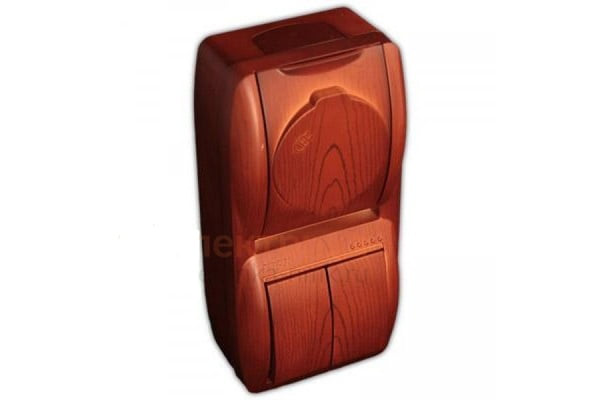 Lezard NATA - это высококачественный вертикальный блок, предназначенный для установки на стену. Он оснащен 2-х клавишным выключателем и розеткой с заземлением.Выключатель и розетка выполнены в стильном дизайне соснового цвета и имеют защитную крышку, которая обеспечивает безопасность и защиту от пыли и влаги.