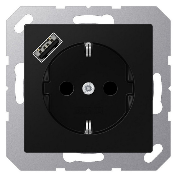 В нашем магазине «Главэлектрика» в Перми, вы можете приобрести товар: «Розетка с/з и с USB-зарядным устройством тип A Jung A Черный матовый» с доставкой по г. Пермь.