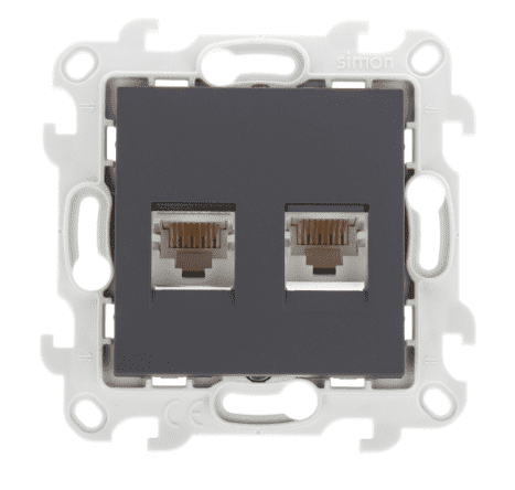 SIMON S24 Графит Розетка 2хRJ45 кат 5е UTP, 2450593-038 совместима с кабелями категории 5е UTP, что позволяет передавать данные со скоростью до 1000 Мбит/с. Благодаря этому, она идеально подходит для использования в сетях Ethernet, где требуется высокая пропускная способность.