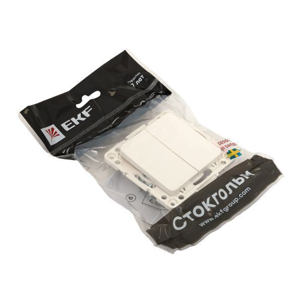 Выключатель двухклавишный проходной EKF серии Стокгольм станет отличным решением для стильного помещения для управления освещением. Выполнен из поликарбоната, устойчивого к ультрафиолетовому излучению. Изделие необходимо дополнить рамкой.