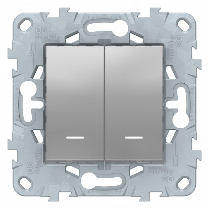 Двухклавишный переключатель Schneider Electric UNICA NEW с подсветкой и возможностью скрытого монтажа – это стильное и функциональное решение для вашего дома или офиса. Изготовленный из алюминия, он сочетает в себе современный дизайн и высокое качество материалов.Этот переключатель позволяет управлять освещением или другими электроприборами с помощью двух отдельных клавиш, что обеспечивает удобство и эффективность использования. Подсветка клавиш делает возможным использование переключателя даже в темное время суток.