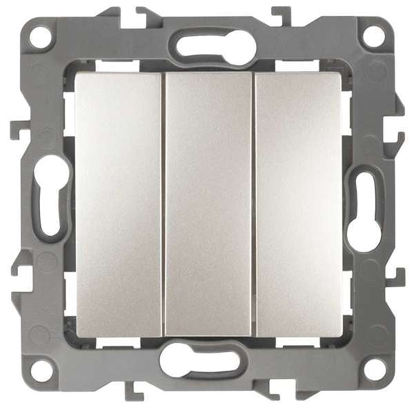 Данный выключатель имеет тройное исполнение, что позволяет управлять тремя электрическими цепями одновременно. Каждый выключатель имеет номинальное напряжение 10А и может работать с напряжением до 250В, обеспечивая безопасность и надежность в использовании.