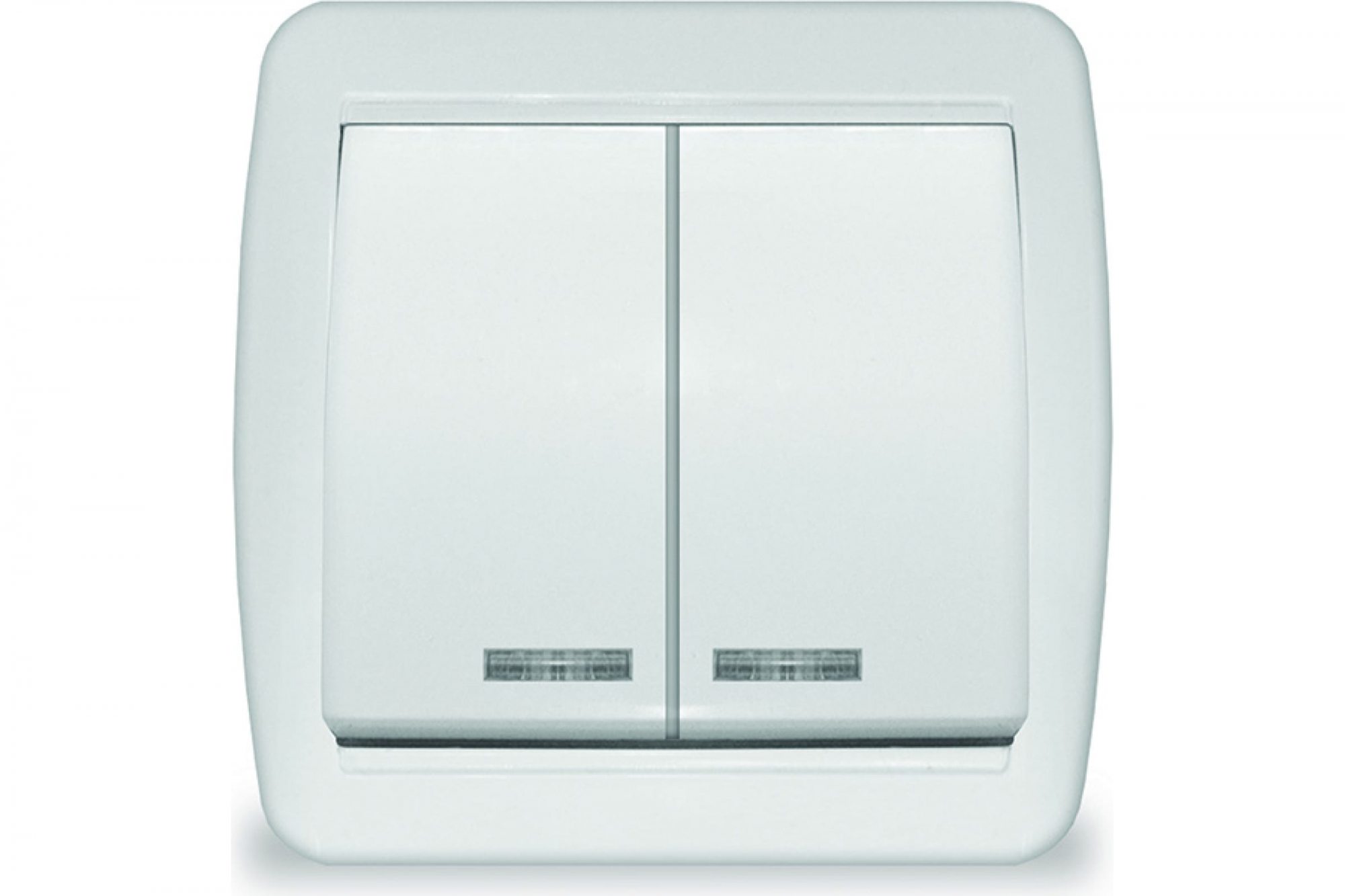 Выключатель 2-клавишный ОП Клио с подсветкой 10А IP44 белого цвета UNIVersal К2227 - это стильный и функциональный выключатель для использования в помещениях с повышенной влажностью, таких как ванные комнаты и кухни. Он имеет два клавишных переключателя для управления двумя отдельными цепями освещения или электроприборами. Подсветка выключателя облегчает его использование в темное время суток. Степень защиты IP44 обеспечивает защиту от пыли и брызг воды, делая его идеальным для установки во влажных условиях. Универсальный дизайн позволяет легко вписать этот выключатель в любой интерьер.