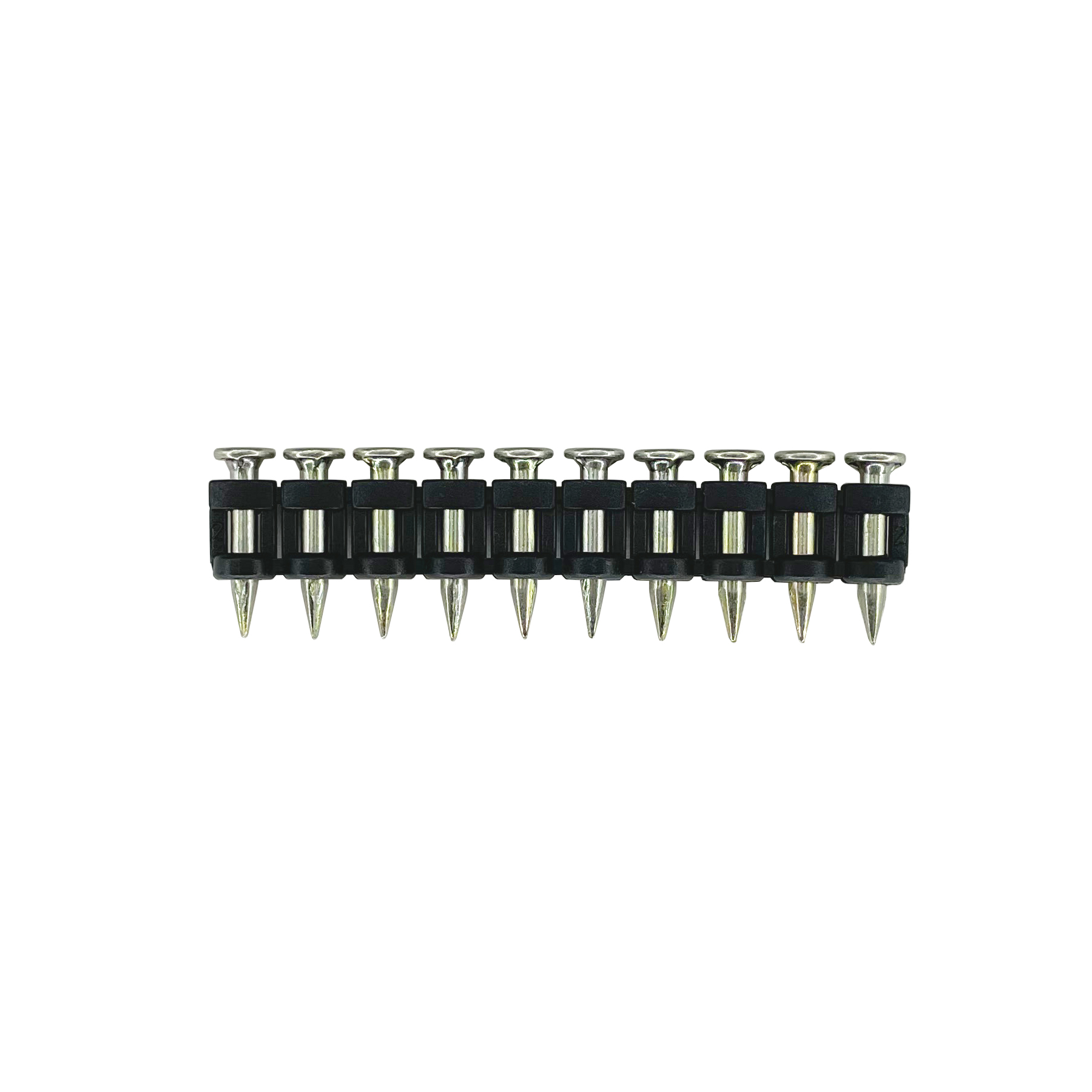 Дюбель-гвозди по бетону , металлу, кирпичу Toua CN подходят для большинства газовых и пневматических монтажных пистолетов, широко используются в общестроительном монтаже: монтаж фанеры к бетону, монтаж тонких металлических и алюминиевых направляющих к бетону и кирпичу, монтаж профлиста к бетону, кирпичу и металлическим балкам. Так же применяются для пристрелки направляющих ГКЛ, штукатурной сетки и инженерных систем.