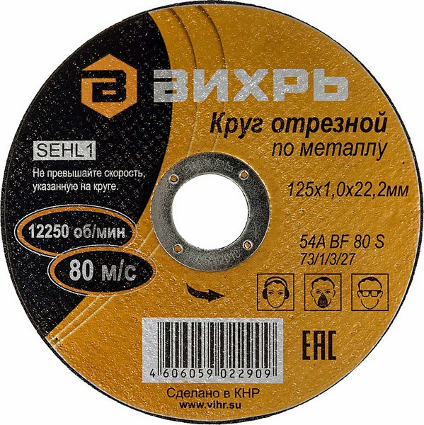 В нашем магазине «Главэлектрика» в Перми, вы можете приобрести товар: «Круг отрезной по металлу 125х1.0х22мм Вихрь 73/1/3/27» с доставкой по г. Пермь.