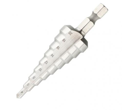 В нашем магазине «Главэлектрика» в Перми, вы можете приобрести товар: «Сверло ступенчатое по металлу 4-6-8-10-12-14-16-18-20мм, P6M5, шестигранный хвостовик Вихрь, , шт» с доставкой по г. Пермь.