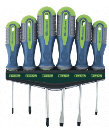 Набор отверток 6 штук от компании Сибртех - незаменимый помощник для выполнения различных видов работ. В наборе представлены отвертки различных размеров и типов: SL 3х75, 5х100, 6х100 и PH 0х75, 1х75, 2х100. Изготовлены из высококачественной хром-ванадиевой стали, что обеспечивает надежность и долгий срок службы инструментов. Удобные рукоятки обеспечивают комфортное использование и позволяют точно передавать усилие при затягивании или отворачивании крепежных элементов. Набор отверток Сибртех - отличный выбор для профессионалов и любителей ремонта и монтажа.