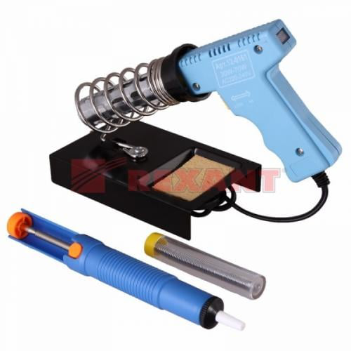 Набор для пайки (паяльник импульсный 30/70 Вт, оловоотсос, подставка, припой) (ZD-303-A) REXANT - это идеальное решение для выполнения различных пайочных работ. В набор входит паяльник с мощностью 30/70 Вт, который обеспечивает быстрый нагрев и равномерное распределение тепла. Оловоотсос поможет избежать вдыхания вредных паров при пайке, а подставка обеспечит удобное хранение паяльника во время работы. Кроме того, в наборе есть припой высокого качества, который обеспечивает надежное соединение металлических деталей. Набор отлично подойдет как для профессиональных мастеров, так и для любителей электроники.