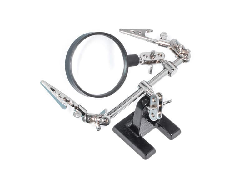 Держатель REXANT третья рука с лупой х 2,5 – это незаменимый инструмент для любого профессионала или любителя, работающего с мелкими деталями и требующего увеличенного изображения для выполнения задач с высокой точностью.