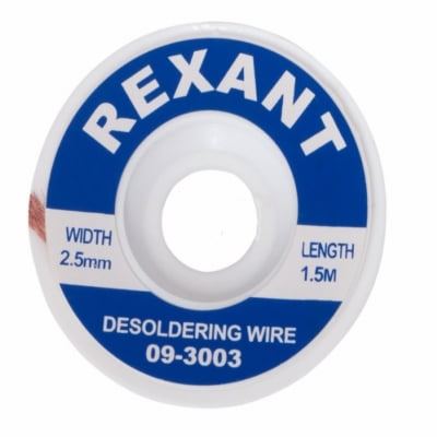 В нашем магазине «Главэлектрика» в Перми, вы можете приобрести товар: «Медная лента для удаления припоя d=2.5мм. x 1.5М REXANT арт.09-3003» с доставкой по г. Пермь.