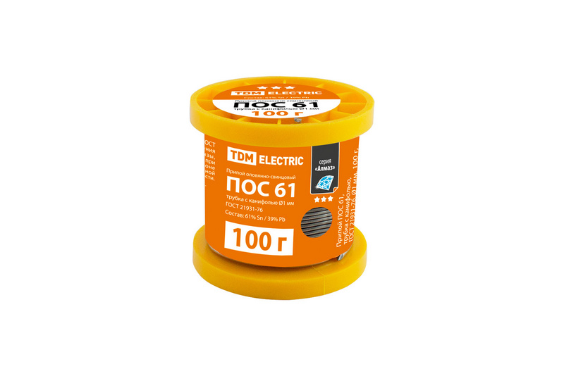 В нашем магазине «Главэлектрика» в Перми, вы можете приобрести товар: «Припой ПОС 61, трубка с канифолью, ГОСТ 21931-76, Ø1 мм, 100 г, катушка, серия "Алмаз" TDM» с доставкой по г. Пермь.