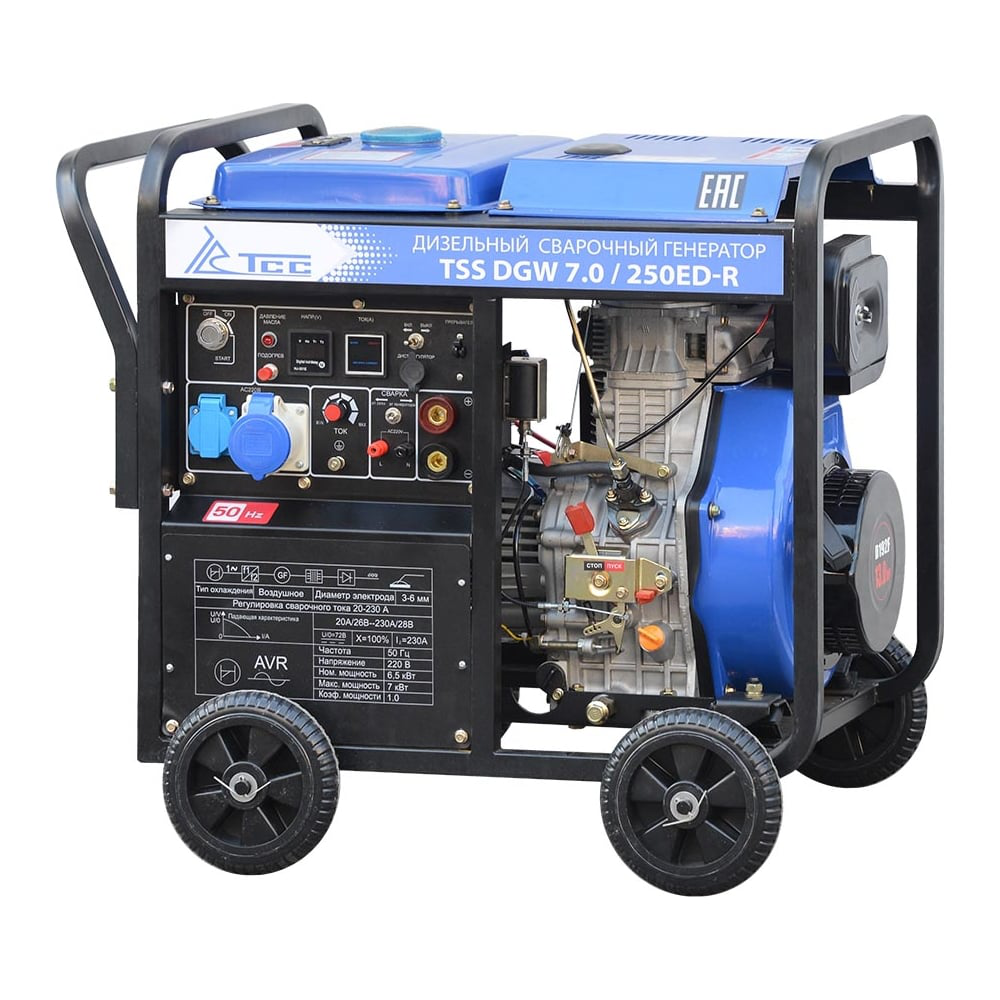 Инверторный дизельный сварочный генератор ТСС DGW 7.0/250ED-R 018692 предназначен для профессиональной эксплуатации. Используется при проведении высококачественной ручной дуговой сварки. Также устройство можно применять в качестве источника энергии для обычных энергопотребителей. Генератор оснащен розетками с пластиковыми защитными крышками, а также колесами и ручкой для удобства транспортировки. Отличается долгим сроком службы.