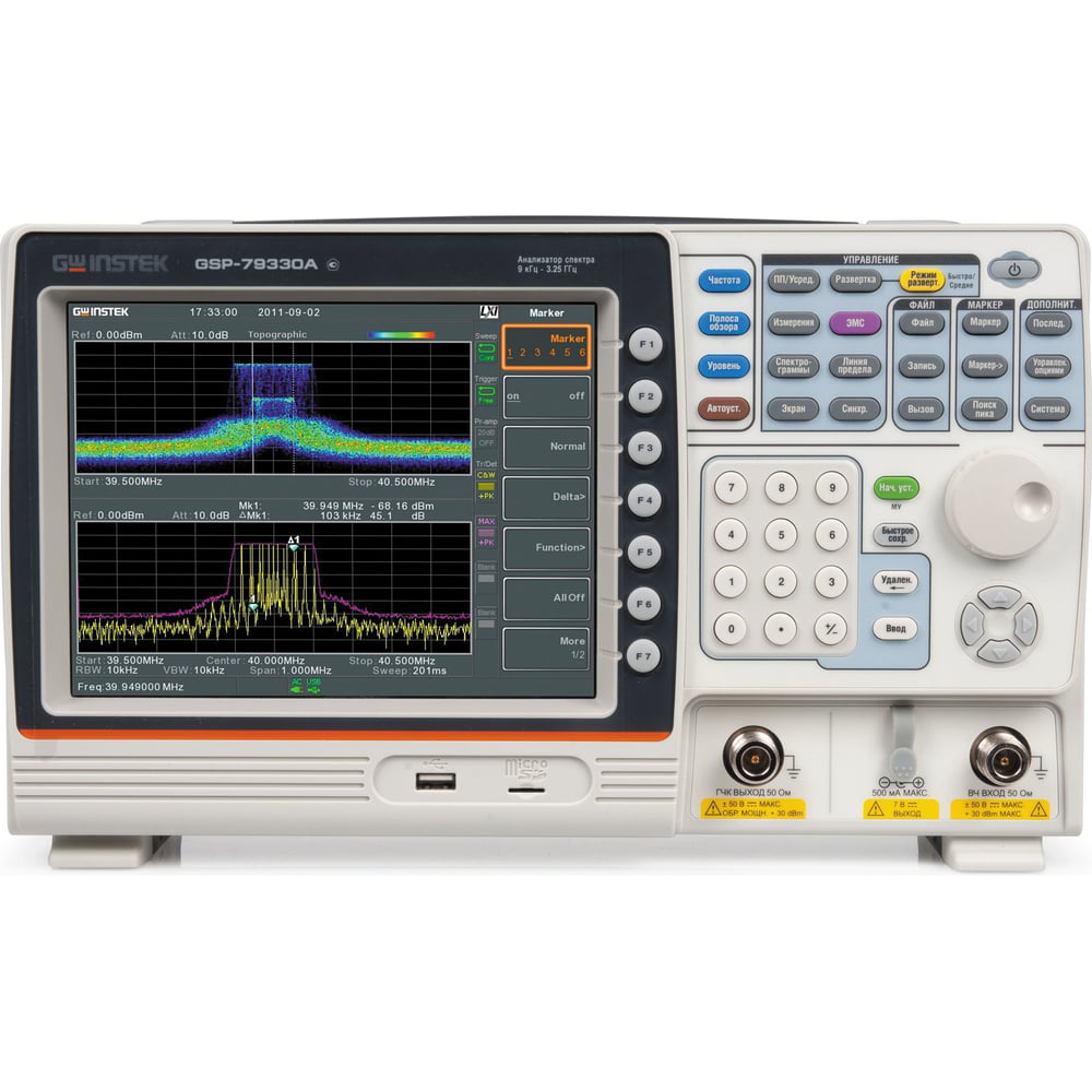 Анализатор спектра GW Instek - GSP-79330AКлючевые особенности:Частотный диапазон 9 кГц...3,25 ГГцСредний уровень собственных шумов: от –134 дБм (с включенным предусилителем)Максимальный входной уровень сигнала: + 33 дБм, постоянный уровень 50 ВФазовый шумы -95 дБн/Гц при отстройке 100 кГц от несущей 1 ГГцИзмерительный функции: точка P1dB, фазовый шум, ACPR, OCBW, N-dB, дрожание фазы, мощность в канале соотношение мощностей в смежных каналах, TOI, CNR, CSO, CTB, измерение полосы по уровню, анализ модуляции, гармоник и др.Полоса пропускания: 1 Гц ... 1 МГц (шаг 1-3-10)Встроенный предусилитель, аттенюатор 50 дБВстроенный режим отображения спектрограммы, топографии и режим раздельных оконФильтры ЭМС: 200 Гц, 9 кГц, 120 кГц,1 МГц (-6 дБ)Детекторы ЭМС: квазипиковый, среднийПрограммное обеспечение для дистанционного управления измерением на ЭМС: SpectrumShotДемодулятор АМ/ЧМ/ЧМн/2-ЧМн/АМн