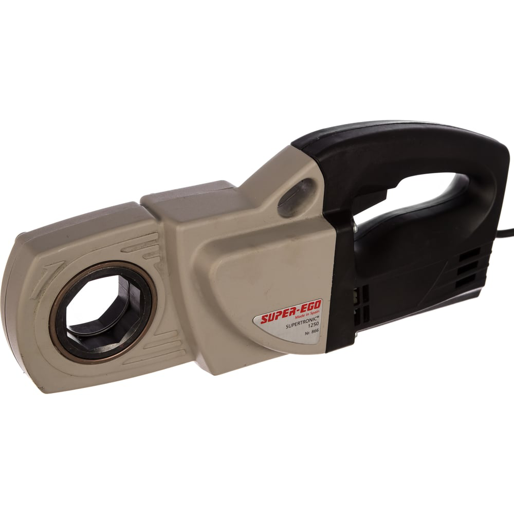 Электрический клупп в кейсе с головками 1/2”-1.1/4” SUPER-EGO supertronic 1250 866200000 используется для простого и быстрого нарезания резьбы на трубах. Конструкция модели делает возможной работу в тесном пространстве. Оборудование питается от обычной бытовой сети 220 В. В комплект поставки входят головки BSPT размером 1/2, 3/4, 1 и 1 1/4 дюйма. Двигатель мощностью 800 Вт обеспечивает высокое количество оборотов оснастки - 27 об/мин. Вес самого инструмента - 5.7 кг.