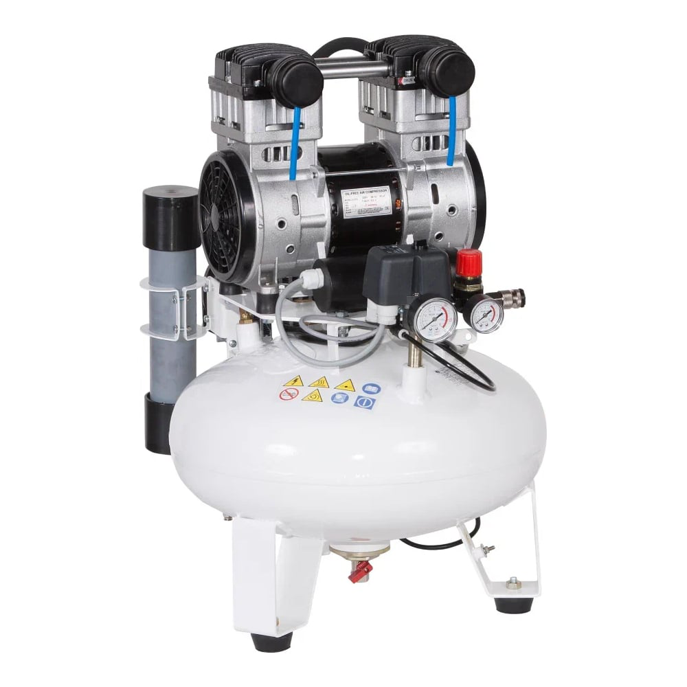 Безмасляный компрессор КМ-24.OLD10Д соответствует всем санитарным нормам, он безопасный и долговечный, имеет понятную систему управления. Ресивер имеет полимерное покрытие, которое защищает его от коррозии. Подходит для стоматологических кабинетов и лабораторий.