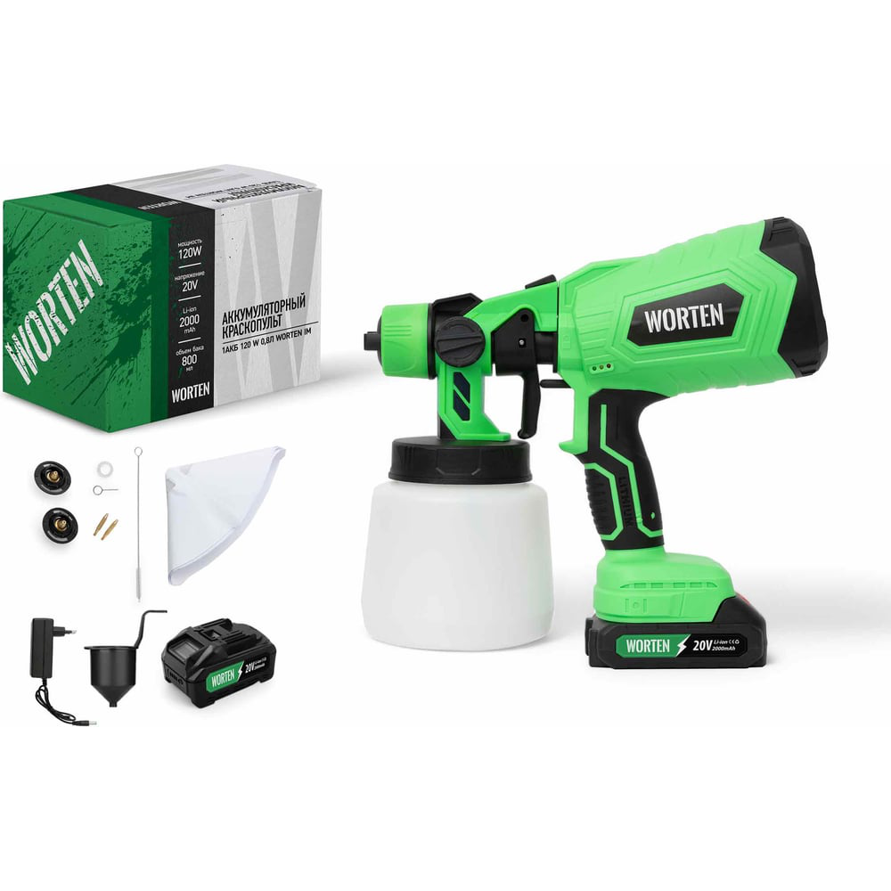 В нашем магазине «Главэлектрика» в Перми, вы можете приобрести товар: «Аккумуляторный краскопульт WORTEN 2х2.0 Ач, 120 W, 800 мл КА-90000337» с доставкой по г. Пермь.