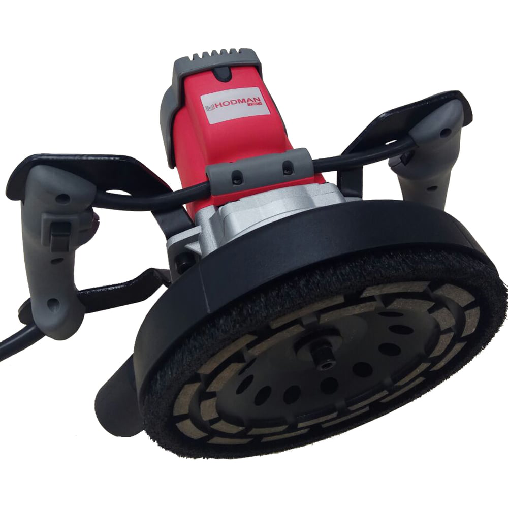 Шлифовальная машина HODMAN GM180 предназначена для работы алмазными чашками диаметром 180 мм с посадочным отверстием 22.2 мм. Шлифмашина позволяет тщательно «отработать» все этапы по устройству высококачественного полированного бетонного пола: выравнивание и подготовка бетонного основания («грубая» обработка) финишное шлифование поверхности уплотнение и упрочнение (полирование) бетонной поверхности ПРЕИМУЩЕСТВА: Съемный элемент защитного кожуха обеспечивает плотное прилегание машины к стене. Шлифование бетонной поверхности выполняется только алмазной чашкой (поставляется вместе с машиной) сухим способом без подачи воды. Для комфортной работы оператора - машина HODMAN GM180 обеспечена противопылевыми кожухом с щетиной и патрубком для подключения пылесоса. Оптимально подходит для работы в небольших и узких помещениях.