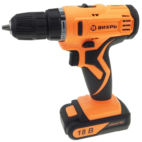 Аккумуляторная дрель-шуруповерт ВИХРЬ ДА-18Л-2 поможет быстро подготовить отверстия в дереве, металле, пластике, без усилий вкрутить или удалить крепеж.Устройство работает от малогабаритного аккумулятора Li-Ion емкостью 2 А*ч и напряжением 18 В с увеличенным количеством циклов зарядки-разрядки, который можно зарядить за 1 ч. Инструмент имеет быстрозажимной патрон, который позволяет быстро менять биты и сверла. Возможность переключения режима оборотов и диаметр патрона 0,8-10 мм позволяют адаптировать дрель-шуруповерт под разные задачи. С помощью устройства можно без проблем сделать отверстия в дереве до 30 мм и металле до 12 мм в диаметре. Переключение на реверсный ход облегчит извлечение крепежных деталей и сверла в случае застревания в твердой поверхности. Прорезиненное покрытие рукоятки облегчает удержание устройства. Наличие подсветки обеспечивает комфортность работы при отсутствии качественного освещения.Эффективная, удобная, надежная модель ВИХРЬ ДА-18Л-2 станет оптимальным выбором аккумуляторного инструмента для дома, дачи, любого объекта. Она ускорит процесс установки крепежа и сверления отверстий.