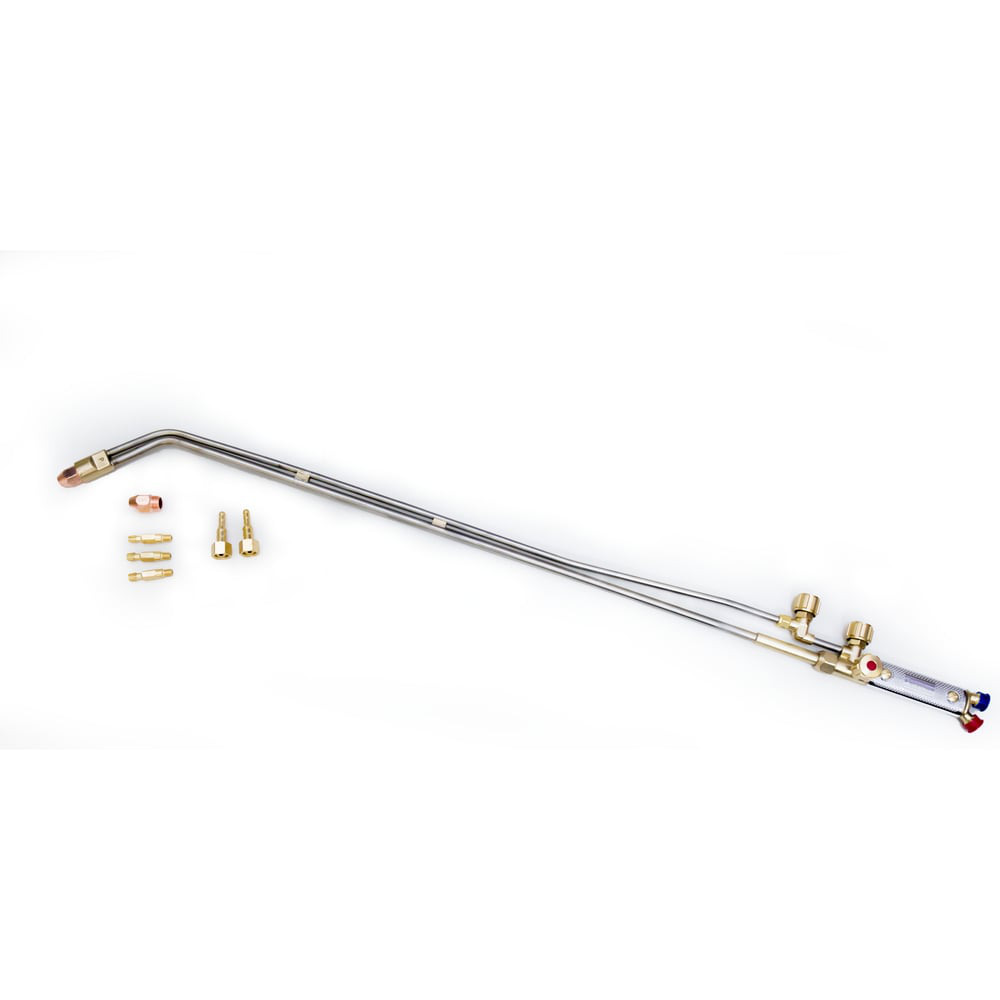 Резак газокислородный инжекторный (щелевой) Резак РЗП ИНКО-300П, удл. исп.03 (850) 45 гр (длина наконечника 850 мм) предназначен для ручной кислородной разделительной резки нелегированных и низколегированных и низкоуглеродистых сталей толщиной до 300 мм. Увеличенная длина наконечника резака позволяет повысить производительность труда резчика. По своим параметрам он соответствует резаку средней мощности Р2 ГОСТ 5191-79 (типа "Маяк") климатического исполнения УХЛ1 ГОСТ 15150-69, горючий газ ПРОПАН-БУТАН от -20 до +40 С.