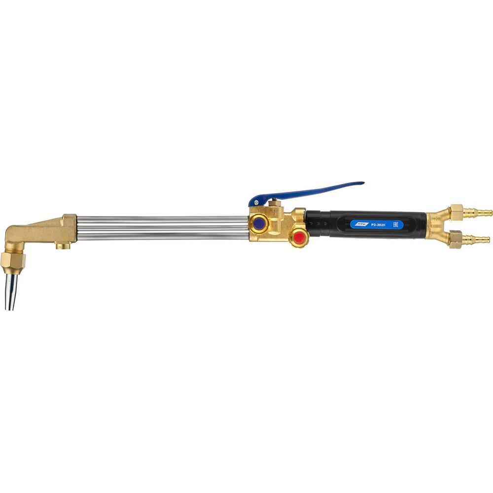 Универсальный рычажный 3-х трубный резак предназначен для ручной кислородной резки листового и сортового металлопроката из низкоуглеродистых сталей толщиной до 300 мм. Резак является аналогом американского резака «Харрис» с газосмесительными мундштука внутриголовочного смешения газов. Резак обладает повышенной надежностью конструкции, которая достигается за счет штампованных латунных элементов резака. На резаке установлена ручка из высокотемпературного пластика, выдерживающая температуру до 200°С, благодаря чему можно работать в тонких рукавицах. Резак может работать на пропане и ацетилене. Выбор газа зависит от установленных газосмесительных мундштуков. Мундштуки к резаку Р3-362К обладают особой прочностью, что гарантирует долгий срок службы и позволит сэкономить на закупке расходных материалов. Для работы с пропаном резак комплектуется разборными газосмесительными мундштуками, для работы с ацетиленом — неразборными газосмесительными мундштуками внутриголовочного смешения газов. Давление газа на входе и расход зависит от установленного мундштука.