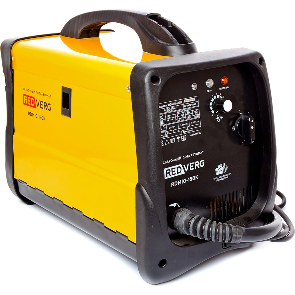 Сварочный аппарат REDVERG RDMIG-150K полуавтомат 5021005 применяется для сварки высокого качества. Может работать в любом положении и подходит для создания потолочных швов. Плавная регулировка скорости подачи проволоки обеспечивает комфортную работу и качественный результат сварного шва. При опасности перегрева срабатывает специальный индикатор и аппарат автоматически отключается. Такая защита предупреждает поломку и значительно продлевает срок службы аппарата.