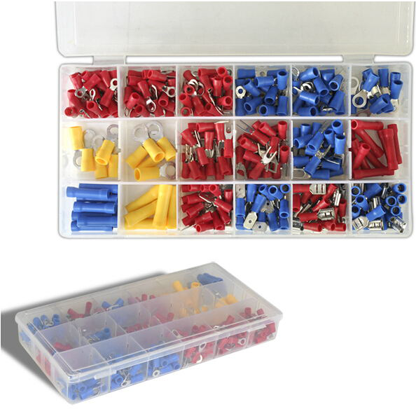Набор включает в себя различные типы наконечников, которые обеспечивают надежное соединение проводов. Они изготовлены из прочного материала, что гарантирует длительную службу без потери контакта.
