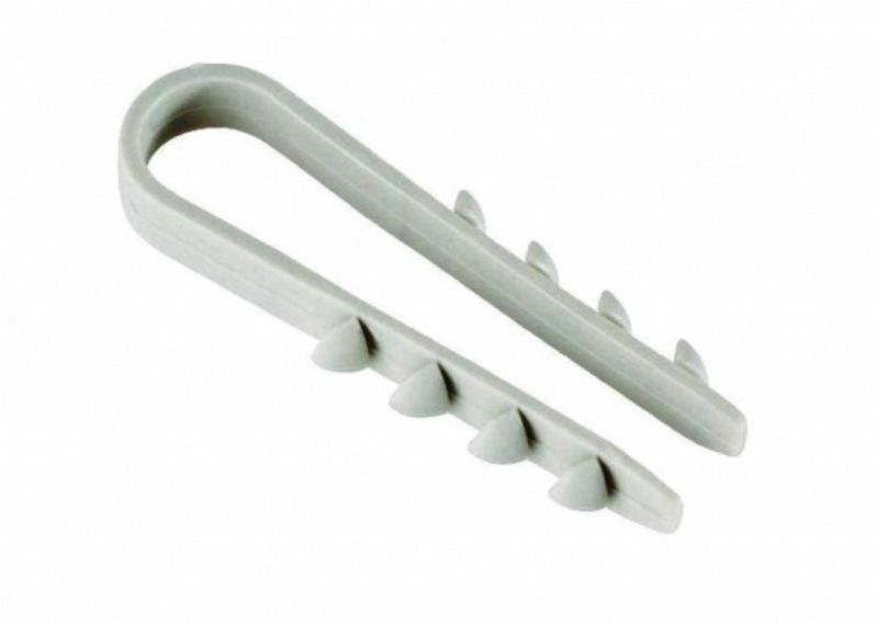 Применяется для фиксации проводов и кабелей к полнотелым материалам. Устанавливается в предварительно пробуренное отверстие. Для крепления не требуется дополнительных деталей.