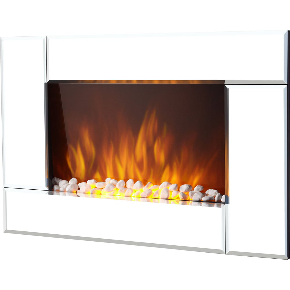 Электрокамин Electrolux EFP/W-2000S НС-1094761 с лицевой панелью из настоящего зеркала станут восхитительным украшением любого интерьера. Благодаря обработке граней зеркала под углом 45 градусов отблески пламени и отражение сходятся в углах, красиво преломляются и придают камину необыкновенный и утонченный вид. В комплекте с камином поставляются декоративные белые камни - современное решение в стиле hi-tech. Инновационная система имитации пламени REAL FIRE PERFECT - максимальная реалистичность Возможность использования камина в режиме "эффект пламени" без обогрева Встроенный модуль Real Sound -аналоговый звук "потрескивания дров" Декоративное топливо - белые камни Мгновенный нагрев помещения до 25 м2. Три режима работы: режим пламени+ обогрев 1 Квт режим пламени+ обогрев 2 Квт режим "эффект пламени" без обогрева Минимальное потребление в режиме имитации пламени – 10 Вт. Функция "звук потрескивания дров" с возможностью регулировки громкости и отключения звука. Регулировка яркости пламени (5 уровней). Установка Все крепежные элементы, необходимые для установки электрического камина EFP/W – 2000S, поставляются в комплекте с камином. Рекомендуется устанавливать настенный электрический камин на высоте от 60 см до 100 см от пола.