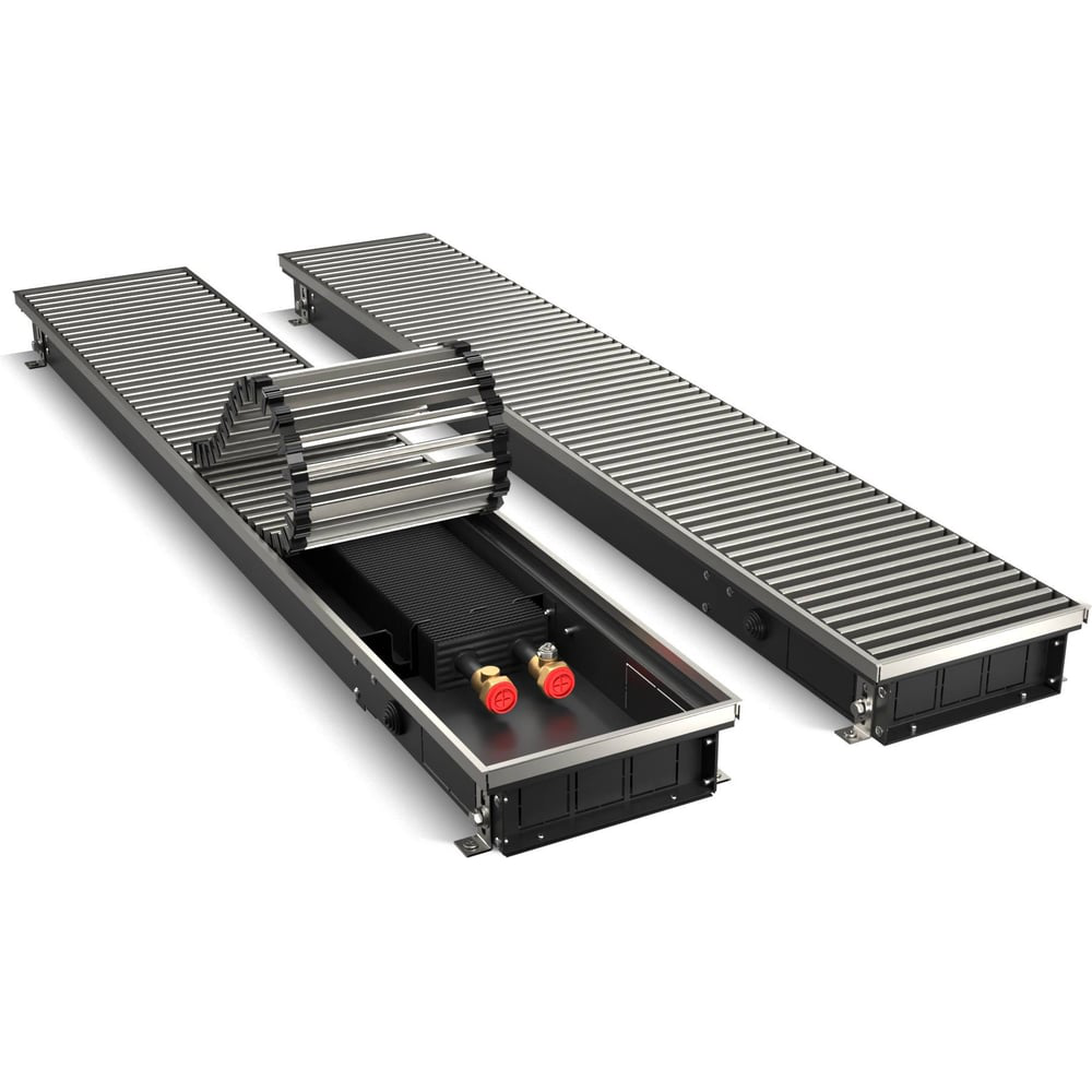 Дизайнерский конвектор Royal Thermo ATRIUM - идеальное решение для обогрева помещений c панорамными окнами. Дизайнерская решетка премиум-класса. Фиксаторы ламелей решетки сделаны из инновационного недеградирующего полимера: такой пластик долговечен и не подвержен разрушению от воздействия ультрафиолета и перепадов температур. Высокоэластичные фиксаторы позволяют легко и компактно свернуть решетку, поэтому ее удобно мыть даже в посудомоечной машине. А благодаря увеличенной высоте ламелей дизайнерская решетка выдерживает шаговую нагрузку более 250 кг. Решетка полностью ремонтопригодная: любую отдельную ламель можно вытащить из фиксаторов и заменить на новую, а анодирование алюминия обеспечивает долгий срок эксплуатации. Торцевые протекторы ламелей решетки защищают от травм, поэтому решетка полностью безопасна для детей и домашних питомцев. Высокоэффективный теплообменник. Высокоэффективный теплообменник конвектора спроектирован инженерами Royal Thermo таким образом, чтобы теплоотдача была максимально возможной при ограниченных размерах. Специальный штамп ребер теплообменника увеличивает площадь конвективного элемента, повышая теплоотдачу, а расстояние между ламелями теплообменника обеспечивает максимальную тепловую эффективность. Первый интеллектуальный конвектор Royal Thermo. C помощью программатора SmartControl и термоэлектрического сервопривода Royal Thermo можно управлять конвекторным отоплением из любой точки мира через приложение в смартфоне (доступно как опция).