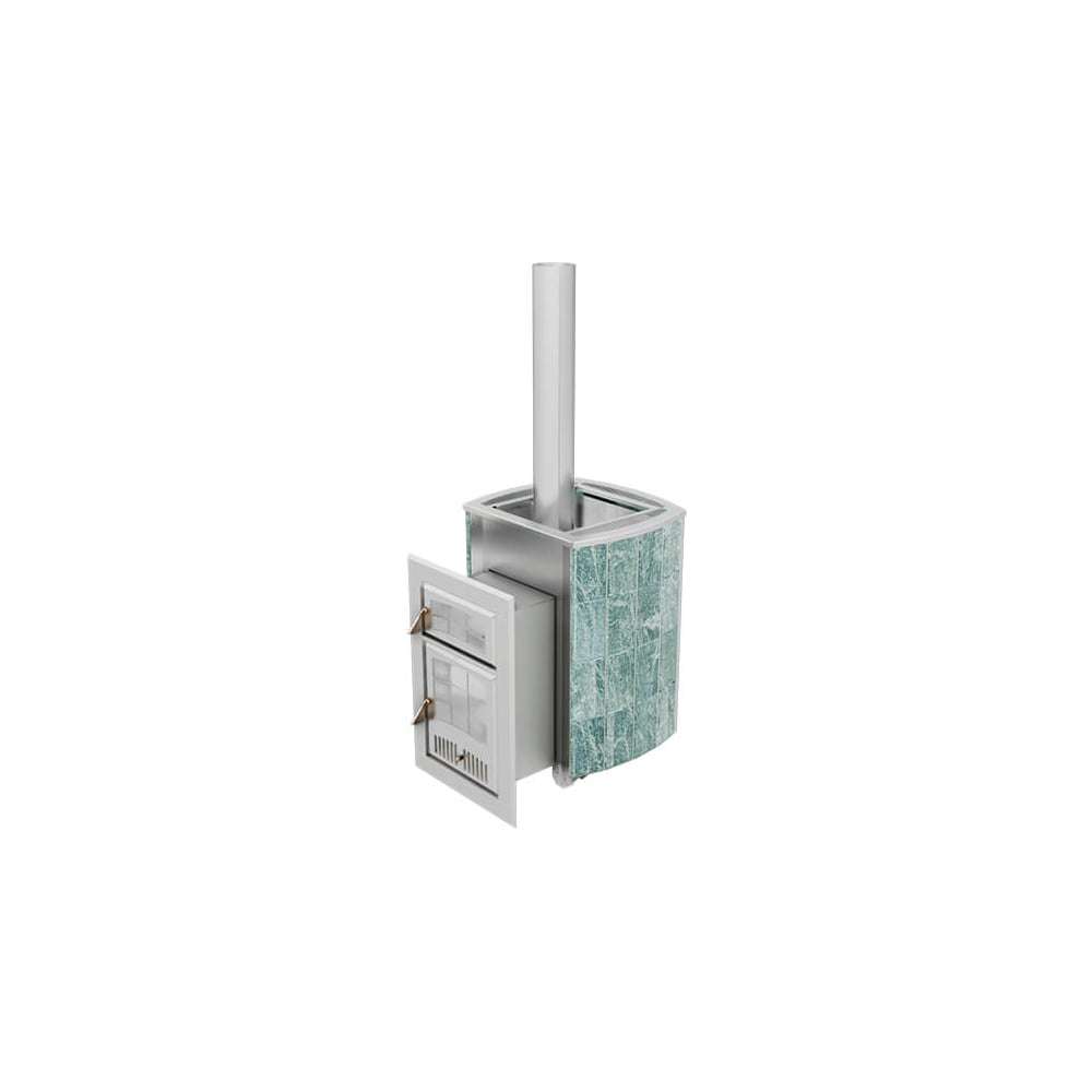Дровяная печь для бани VVD Чародейка малая 2021, топка сталь нержавеющая AISI439 4 мм, облицовка змеевик 10007 - уменьшенный вариант печи "Чародейка". Модель предназначена для эксплуатации в парных помещениях объёмом до 20 м.куб. Топочный агрегат выполнен из нержавеющей стали AISI 439 толщиной 4 мм. Топочный агрегат печи выполнен по двухкамерной схеме. В первой камере топки происходит горение дров, а во второй дожигание топливных газов, куда по специальным каналам подается воздух. Наличие дверки у второй камеры даёт возможность производить чистку дымохода. Большая площадь контакта поверхности каменки с пламенем, наличие рёбер-регистров, а также система дожигания топливных газов, делают топочный агрегат печи, при его относительно небольшом весе, чрезвычайно мобильным и производительным, а в целом всю печь эффективной и экономной.