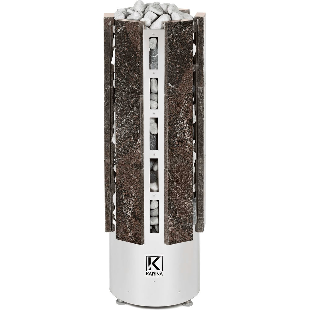 Электрокаменка Karina Forta 18 Амфиболитвыполнена в напольном варианте и обладает цилиндрической формой дополненной плитами из натурального камня Амфиболита. Напряжение питания - 380В. Данная модель имеет 6 тэнов, расположенных в виде треугольника. В центре внизу расположен бак для воды емкостью 5л, который является парогенератором. Выше парогенератора имеется емкость под мелкие камни или нержавеющие шары объемом 4.7л, вмещающая 10 кг мелкого камня, называемая закрытой каменкой с воронкой для подачи воды и получения мелкодисперсного пара. Электрическая печь Karina Forta 15 Амфиболитподойдет для любителей как финской сауны, так и русской бани.Если в парогенератор не заливать воду, то каменка разогреет парную до высокой температуры (100 -120°C) с относительной влажностью воздуха 10-12% - режим сухой бани (финская сауна). Если залить воду в парогенератор, то при разогреве парной вода будет испаряться и увлажнять воздух до режима русской бани (60-70°C и 40-50% влажности). В обоих случаях возможно использование закрытой каменки, которая дополнительно прибавит мелкодисперного необжигающего пара.Все корпусные элементы печи выполнены из нержавеющей стали. Нагревательный элемент - ТЭН диаметром 10мм. Наружный кожух каменки дополнительно облицован плитами из Амфиболита толщиной 40мм, что придает ей еще большую теплоемкость и меньшее излучение от металлических элементов, которые выжигают воздух в парной. Общий вес камней – 205кг (120кг – загрузка камней в печь и 85кг - вес облицовки).