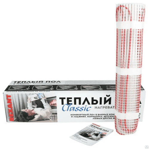 Нагревательные маты REXANT Classic обеспечивают мощность тепловыделения до 150 Вт/м2Нагревательные маты монтируются под цементно-песчаную стяжку (толщина стяжки в пределах 20 мм) или же плиточный клей (толщина слоя плиточного клея 5-7 мм).