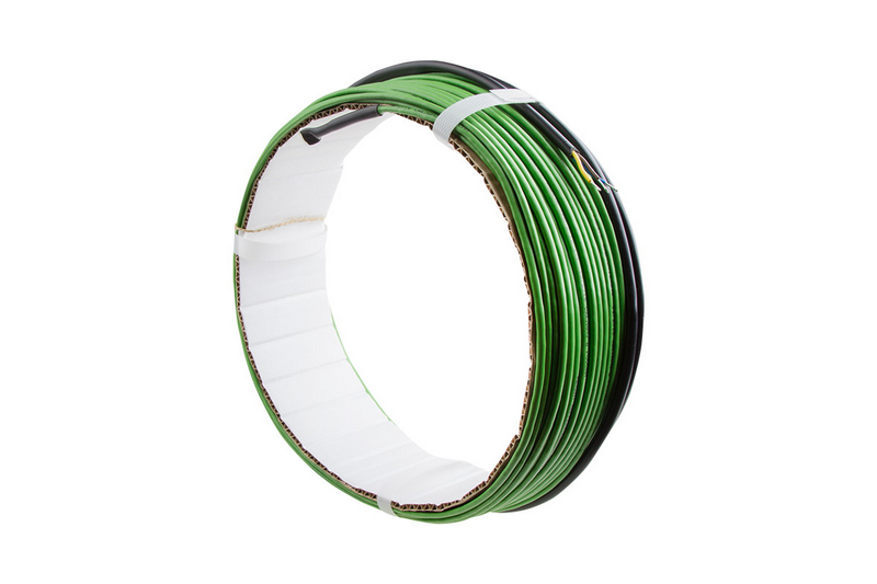 Комплект кабельного тёплого пола REXANT Slim предназначен для обогрева разных помещений и работает от бытовой электросети с напряжением 220–240 В. В его основе лежит тонкий кабель с удельной мощностью 18 Вт/м, который укладывается непосредственно под напольное покрытие без необходимости использования бетонной стяжки. Чтобы обеспечить равномерное распределение тепла, рекомендуется соблюдать расстояние между витками не более 15 см. Минимальный радиус изгиба нагревательного кабеля составляет 3 см. Тепловыделяющие жилы защищены фторопластовой изоляцией, а дополнительная оплётка выполнена из медных проводов.