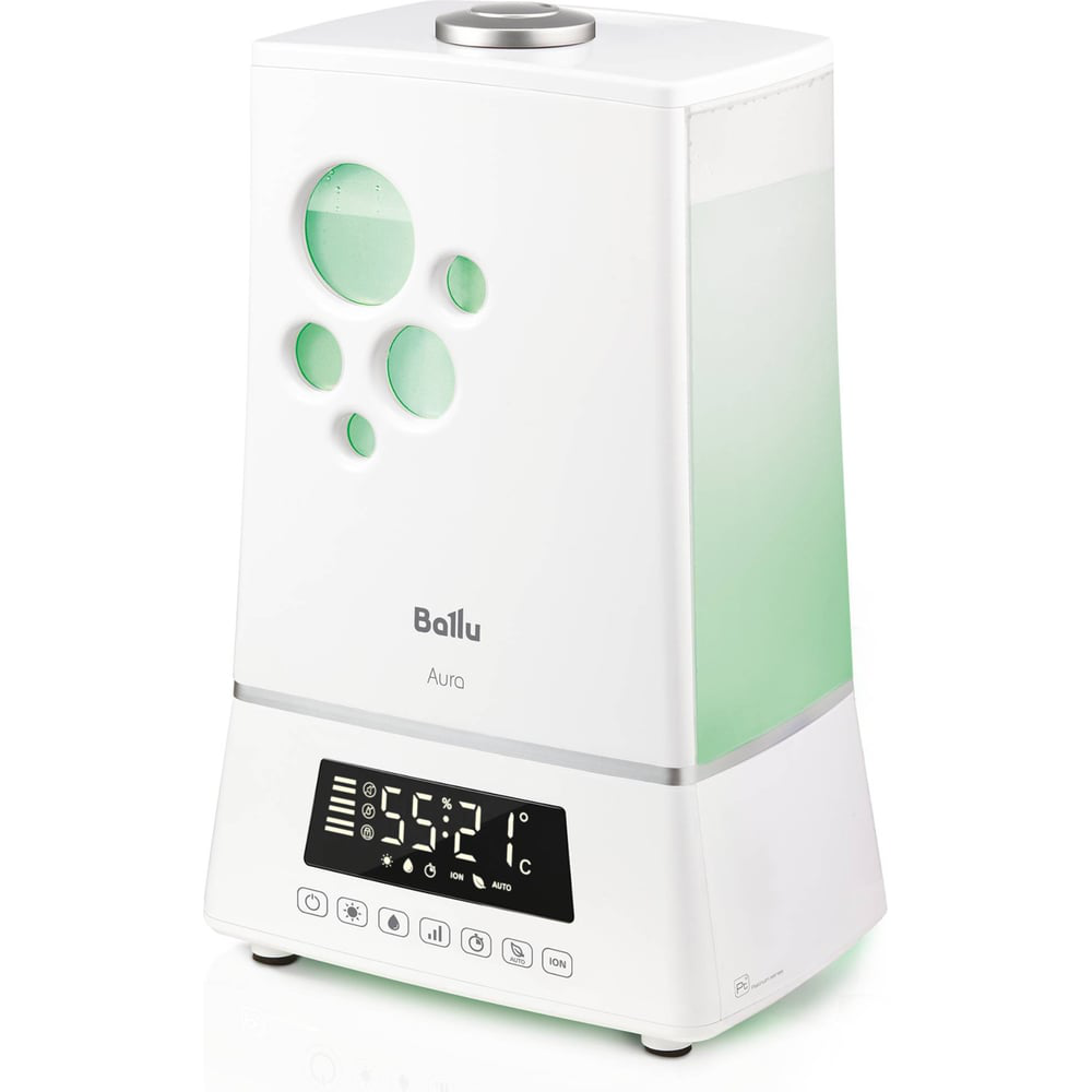 Ультразвуковой увлажнитель воздуха Ballu UHB-1100 НС-1172319 - это уникальное сочетание современных технологий увлажнения воздуха, воплощенные в непревзойденном дизайне и гарантирующие исключительную атмосферу комфорта, свежести и уюта в вашем доме.Большой бак для воды вмещает в себя 7,5литров, что обеспечивает непрерывное увлажнение в течение 21часаБезопасное увлажнение в режиме теплого пара за счет нагрева воды до 80°С и ее пастеризацииВстроенная, отключаемая функция ионизации воздуха насыщает воздух полезными для здоровья аэроионамиИнтеллектуальные режимы работы: AUTO, BIO и НочнойТри скорости регулировки интенсивности увлажнения для эффективной работыБлокировка панели управления – защита отдетей и от случайного сброса настроекУправление увлажнителем осуществляется как с помощью сенсорной панели управления, так и пультом ДУЯркий, контрастный дисплей в режиме реального времени позволяет отследить текущий уровень влажности, остаток воды в резервуаре, установленные режимы работыTimer на отключение (интервалы времени: 1-24часов)Фильтр с ионообменной смолой (AQUA фильтр) очищает водопроводную воду от солей жесткостиМягкая двухуровневая подсветка резервуара и базы позволяет использовать прибор, в том числе, как ночникВстроенная ароматическая капсула