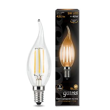 Светодиодная лампа Gauss Filament Свеча на ветру E14 5W 2700КСерия – Filament, свеча на ветру прозрачная с нитевым излучателем.