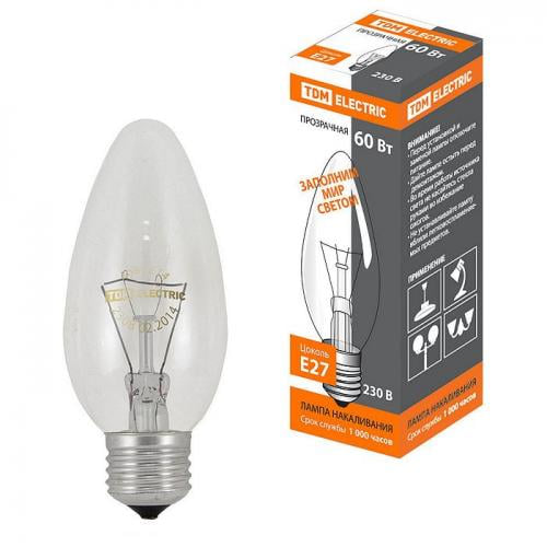 В нашем магазине «Главэлектрика» в Перми, вы можете приобрести товар: «TDM 60 Вт-230 В-Е27 прозрачная свеча» с доставкой по г. Пермь.