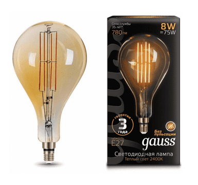 Благодаря низкому энергопотреблению всего 8 Вт, лампа экономит вашу электроэнергию, а долгий срок службы светодиодов позволяет наслаждаться ярким и качественным светом на долгие годы. Приобретите лампу филаментную светодиодную Vintage Gauss A160 8W E27 и добавьте шарму и утонченности вашему интерьеру.