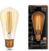 Лампа Gauss LED Filament ST64 E27 8W Golden 2400К Производитель: GaussМощность: 8 Вт