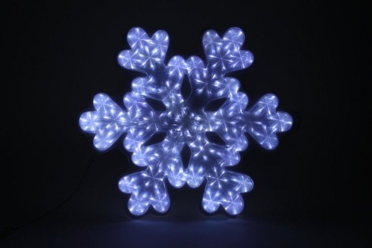 Светящаяся Снежинка имеет 48 светодиодных лампочек, которые ярко сияют в темноте, создавая романтическое и загадочное освещение. Благодаря своей конструкции, фигуру легко закрепить на окне, стене или двери – выбирайте то место, где она будет выглядеть наиболее эффектно.