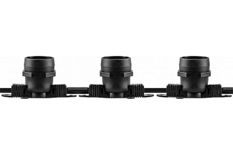 Гирлянда Белт-лайт CL25-25 100шт. E27 шаг 25cm. черный 25м +1,5м IP65 - это эффектная гирлянда, состоящая из 100 лампочек E27 с интервалом между ними 25 см. Она имеет черный цвет, длиной 25 метров и дополнительным кабелем длиной 1,5 метра. Гирлянда обладает защитой от влаги и пыли IP65, что позволяет использовать ее как внутри помещений, так и на улице. Этот продукт станет отличным украшением для праздничного декора, торжественных мероприятий или просто для создания уютной атмосферы в интерьере.