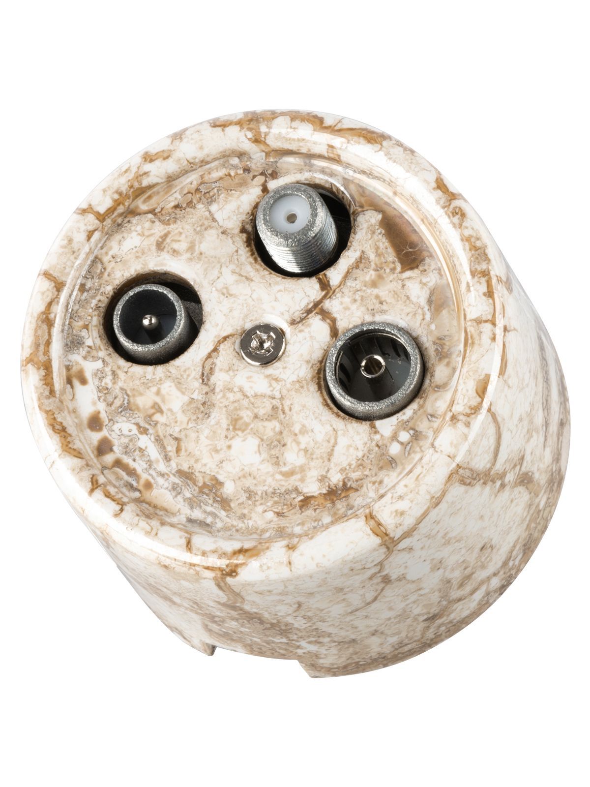 Розетка TV+R+ SAT оконечная мраморная «Болонь» TDM - это элегантное и стильное устройство для подключения телевизора, радио и спутникового телевидения. Изготовленная из мрамора модель «Болонь» добавит изысканности интерьеру любого помещения. Современный дизайн, высокое качество материалов и прочное исполнение делают эту розетку надежным и эстетичным выбором для вашего дома.