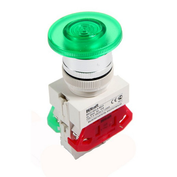 В нашем магазине «Главэлектрика» в Перми, вы можете приобрести товар: «Арм. светосигн. AELA-22 неон кнопка зелёная "Гриб" 1з+1р 220В ВK-22 DEKraft» с доставкой по г. Пермь.