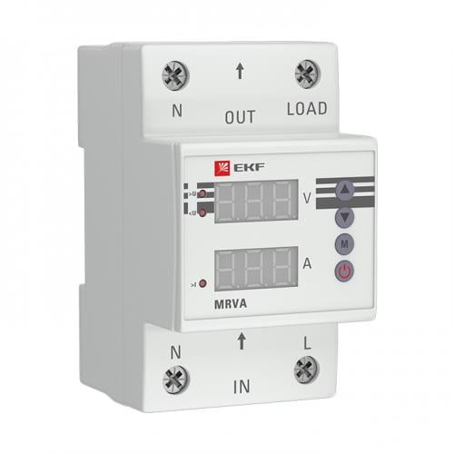 Реле напряжения и тока EKF PROxima являются микропроцессорным устройством и предназначено для постоянного контроля напряжения в однофазных и трехфазных сетях (MRVA-3) переменного тока, для защиты электроустановок от перепадов напряжения. Реле контролирует напряжение в сети в установленном диапазоне и при выходе напряжения за пределы диапазона отключает оборудование от сети электропитания с заданной выдержкой времени. Установка диапазона напряжения и времени срабатывания производится с помощью поворотных регуляторов (RV-5A, RV-32F) либо при помощи кнопок (MRV, MRVA, MRVs) расположенных на лицевой поверхности реле.