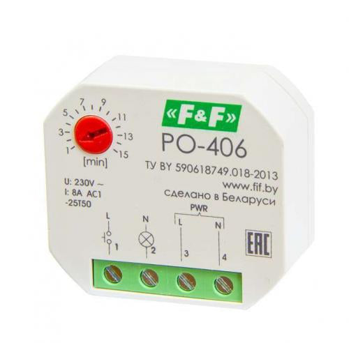 Реле времени программируемое PO-406 предназначено для поддержания работы устройства после размыкания управляющего контакта в течение установленного отрезка времени. Например, в вентиляционных системах, санузлах и т.п., выключателем включаем освещение, после выключения освещения вентилятор включится на установленный отрезок времени.