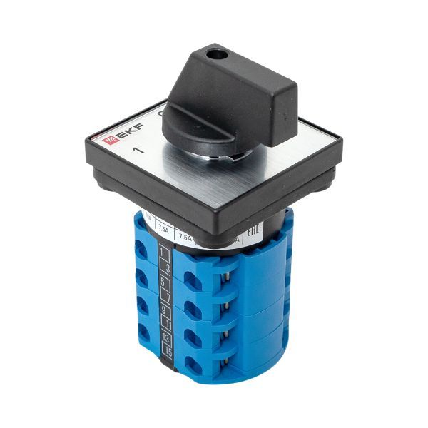 Кулачковые переключатели ПК EKF PROxima представляют собой механические коммутационные аппараты. Рассчитаны на применение в цепях переменного тока номинальным напряжением до 400 В и частотой 50/60 Гц. Благодаря повышенному содержанию серебра в контактах достигается их пониженное переходное сопротивление и повышенная устойчивость к воздействию внешней среды. Выпускается несколько исполнений кулачковых переключателей: • ПК-1 – стандартный кулачковый переключатель с различными схемами коммутации и разным количеством полюсов; • ПК-2 – трехфазный кулачковый переключатель с усовершенствованной контактной группой (выключатель нагрузки); • ПК-3 – трехфазный кулачковый переключатель в защитном боксе IP 54 (выключатель нагрузки). Переключатели ПК-1 и ПК-2 выпускаются с передним креплением. Устанавливаются на переднюю панель щитового оборудования, пульт управления и т. п. Переключатели ПК-3 с задним креплением устанавливаются на монтажную панель.