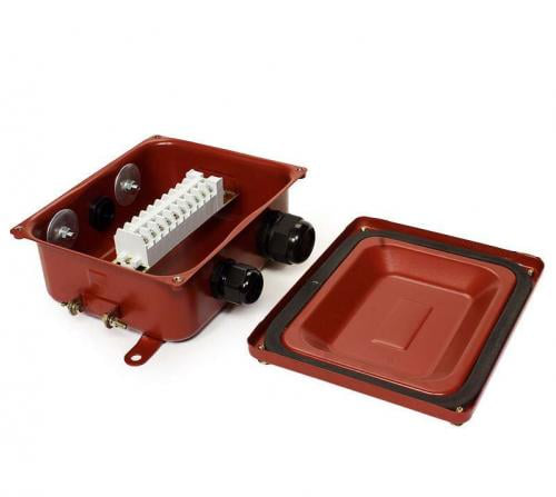 Узлы заземления не окрашены и не требуют зачистки. DIN - рейка позволяющая установить дополнительное оборудование. Винты под крест-плоскую отвертку. Оцинкованная сталь с грунтовым покрытием. Коробки с наборными зажимами КЗНС 08 и КЗНС 16 предназначены для соединения и разветвления силовых электрических цепей и цепей КИПиА, выполняемых контрольными и силовыми кабелями с алюминиевыми или медными жилами. Коробки комплектуются латунными либо пластиковыми кабельными вводами. Степень защиты коробок с латунными кабельными вводами и металлическими заглушками IP65 по ГОСТ 14254-2015 . С пластиковыми кабельными вводами IP54 по ГОСТ 14254-2015. Коробка распределительная металлическая на наружной поверхности имеет ушки, предназначенные для их крепления к строительным конструкциям с помощью стандартных крепежных изделий или сварки. Коробки КЗНС 08 и КЗНС 16 имеют дополнительные отверстия для установки привертных сальников; отверстия закрыты металлическими заглушками, которые при необходимости снимают. Коробки клеммные — э