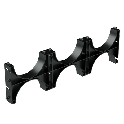 Особенности тройного кластера для двустенных труб включают в себя возможность одновременной фиксации трех труб, что значительно экономит время и силы при монтаже. Кроме того, предусмотрены специальные отверстия и стопоры для надежной фиксации труб на нужном расстоянии.